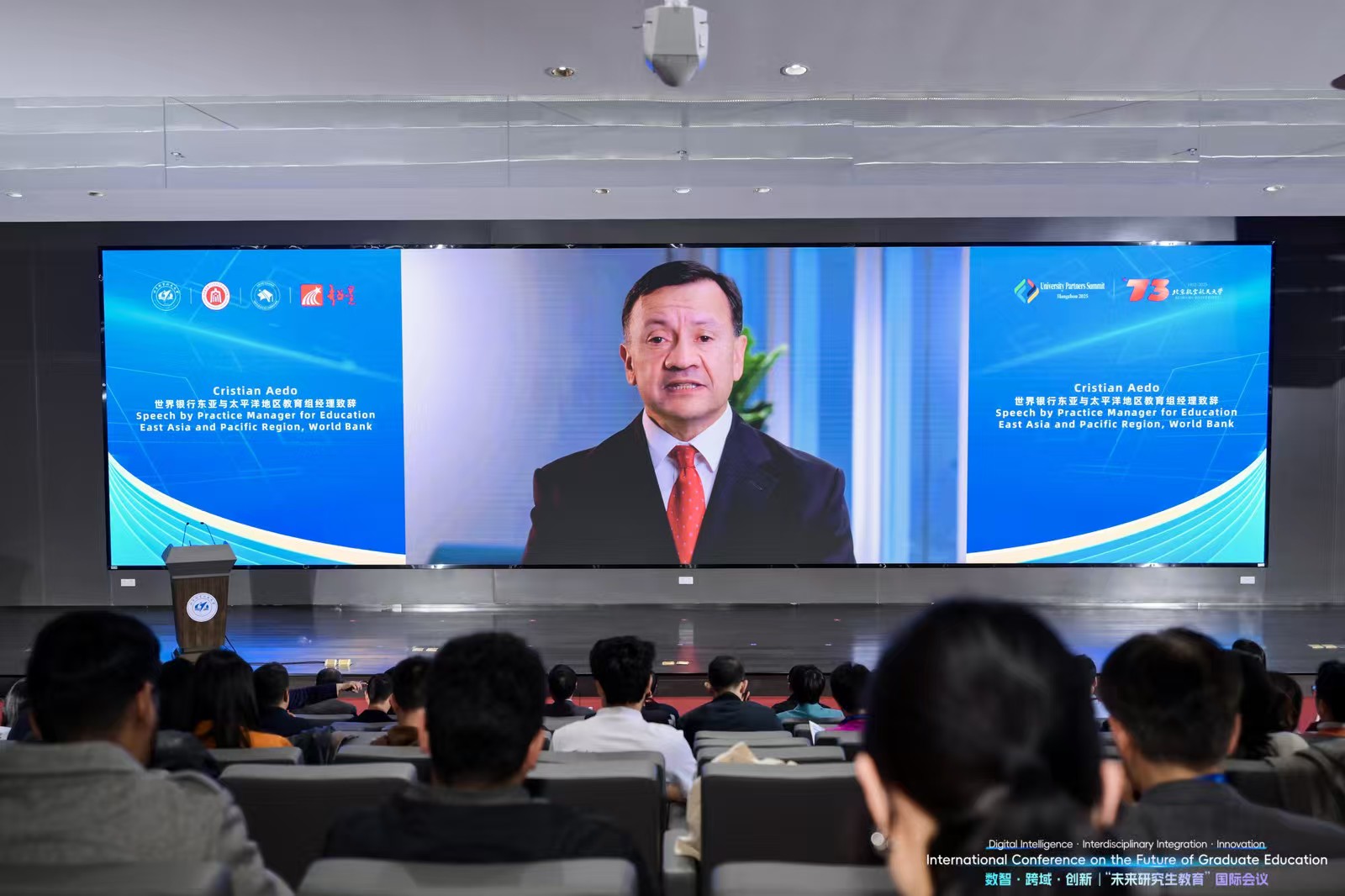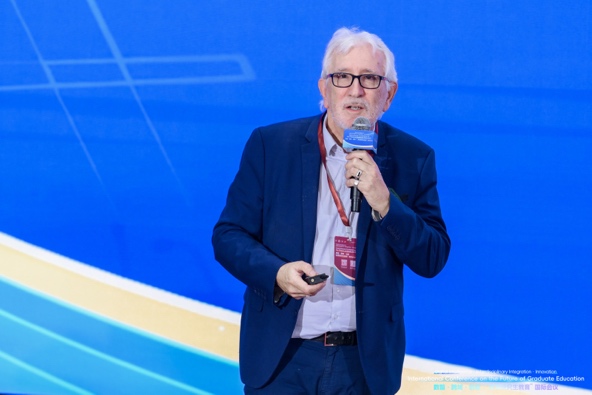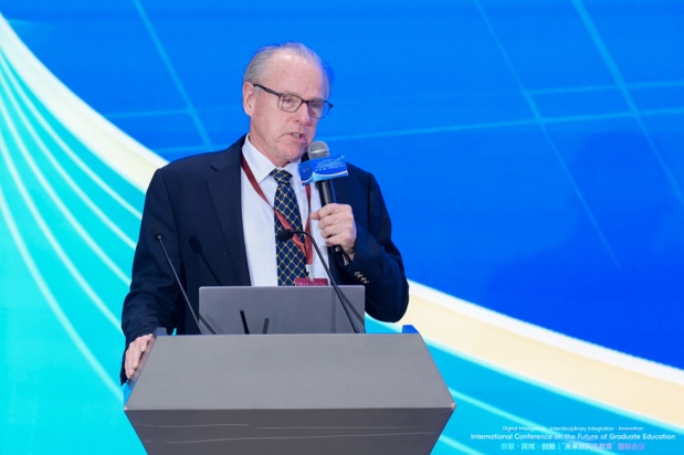 Cristian Aedo表示,当今世界面临气候变化、人工智能颠覆和社会不平等等多重全球挑战,这要求研究生教育必须重新审视。他指出,中国研究生教育规模扩张令人瞩目,但也面临毕业生数量与就业市场需求不匹配的挑战,传统教育模式正面临审视。他呼吁,研究生教育应培养学生在多元角色中塑造未来的能力,并希望与会者深入探讨如何重新设计课程、发挥数字化学习作用以及将全球公民意识与伦理领导力融入教育结构中。