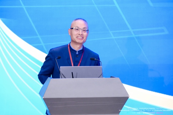 吴江浩代表北京航空航天大学对与会嘉宾表示欢迎,并介绍了北航在研究生教育改革方面的实践成果。面对数字时代的机遇与挑战,他提出了研究生教育的三个重点:第一,聚焦“数智”,利用人工智能技术作为催化剂,打破学科壁垒,重塑研究生教育范式,从知识传授者转向学生能力的引导者;第二,聚焦“跨域”,以更开放的姿态深化国际交流与合作,构建全球化科教融合共同体,在服务国家战略的同时面向全人类共同挑战;第三,聚焦“创新”,处理好“术”与“道”的辩证关系,构建高效智能且充满人文关怀的教育生态,真正做到科技向善、为国育才。