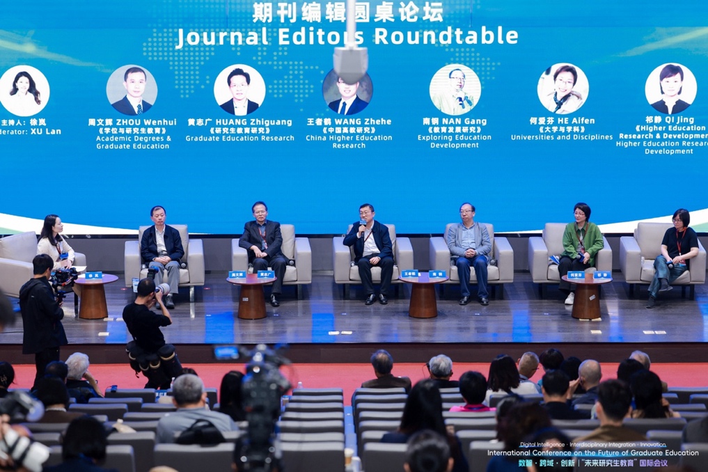 在期刊编辑圆桌论坛上,北京理工大学研究生教育研究中心副主任、《学位与研究生教育》杂志社社长周文辉,中国科学技术大学、《研究生教育研究》编辑部执行主任黄志广,中国高等教育学会秘书处编辑部副主任、《中国高教研究》副主编王者鹤,上海市教育科学研究院、《教育发展研究》副编审南钢,教育部学位中心研究与发展处高级项目主任、《大学与学科》期刊编辑何爱芬,祈静等期刊编辑围绕“教育研究论文的写作、发表与学术伦理”,就教育政策解读的多种模式、研究的理论框架构建、本土化与国际化的平衡,以及AI时代下的学术诚信与同行评审伦理等关键议题进行了深入交流与探讨。
