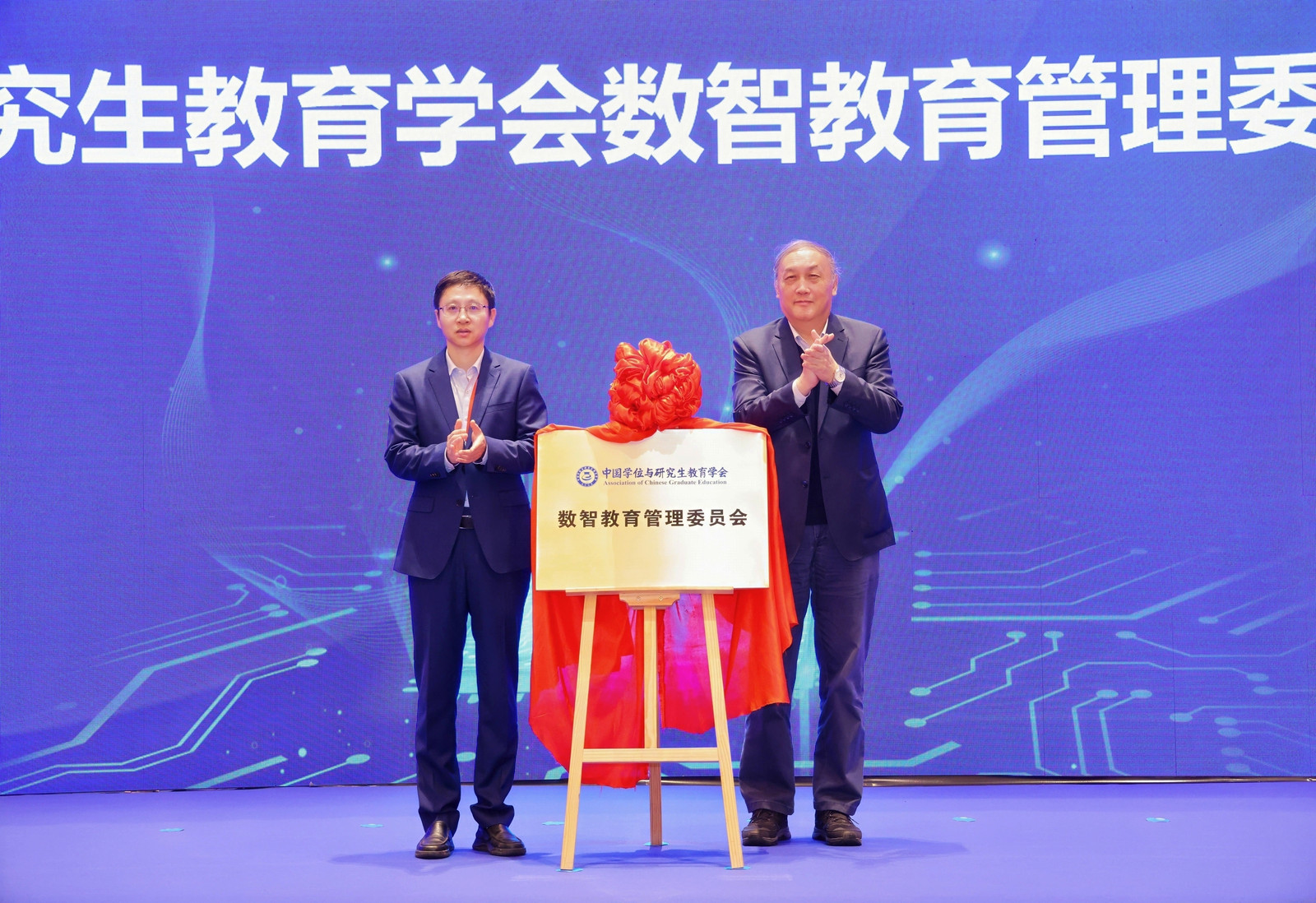 开幕式上举行了“中国学位与研究生教育学会数智教育管理委员会”揭牌仪式,由中国学位与研究生教育学会会长、中国科学院院士杨卫,数智教育管理委员会秘书处、北京航空航天大学副校长吴江浩共同揭牌。